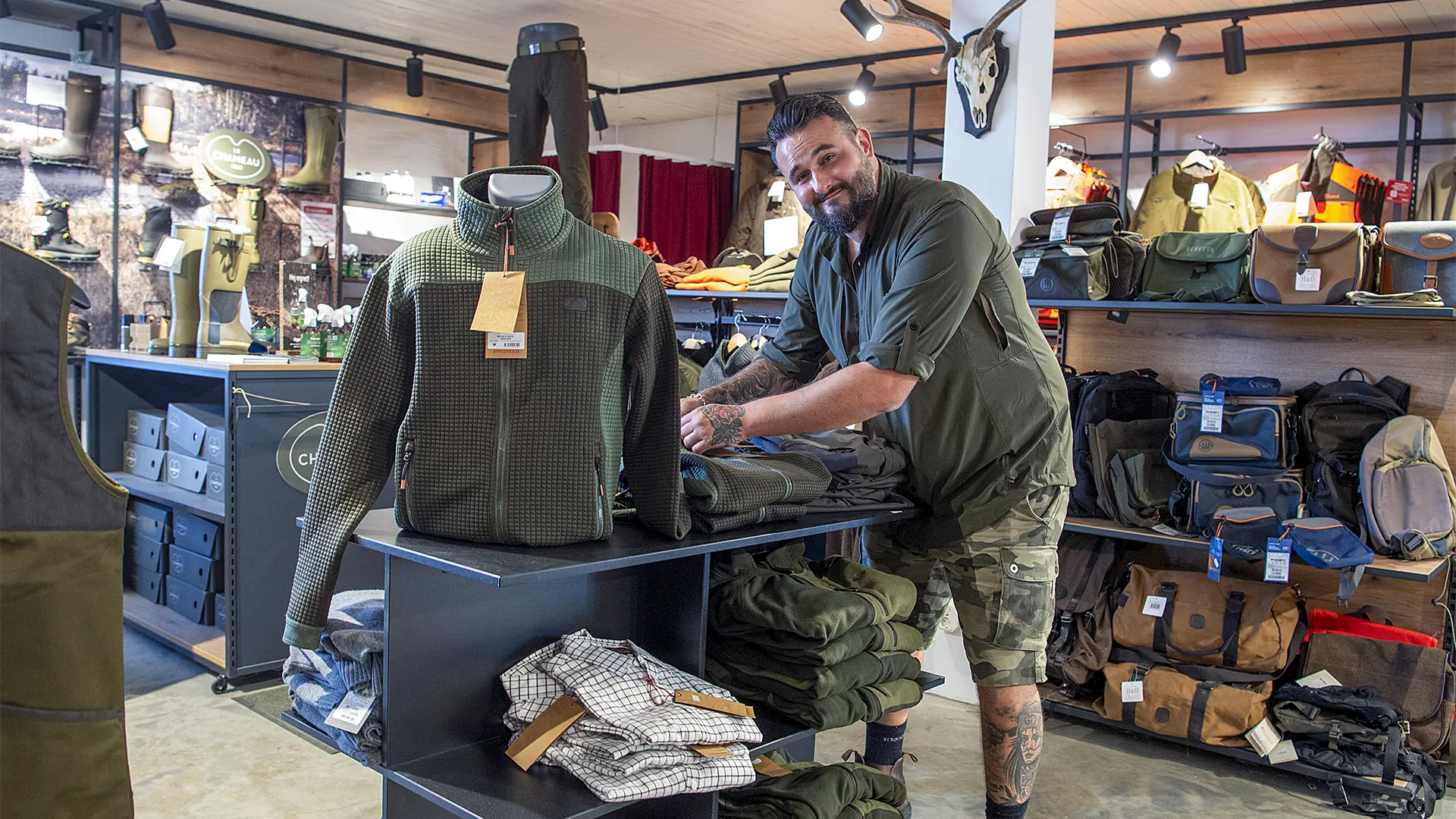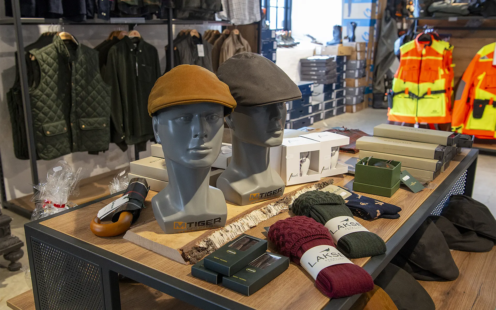 På 700 kvadratmeter finns det mesta du behöver till jakten, från vapen och ammunition till kläder, skor, väskor, kepsar, kikare, knivar, myggmedel, jaktradio och pannlampor. Om du inte jagar men tycker om friluftsliv finns det ett bra utbud av kläder från exempelvis Barbour och Chevalier. Även fågelskådare är trogna kunder här.