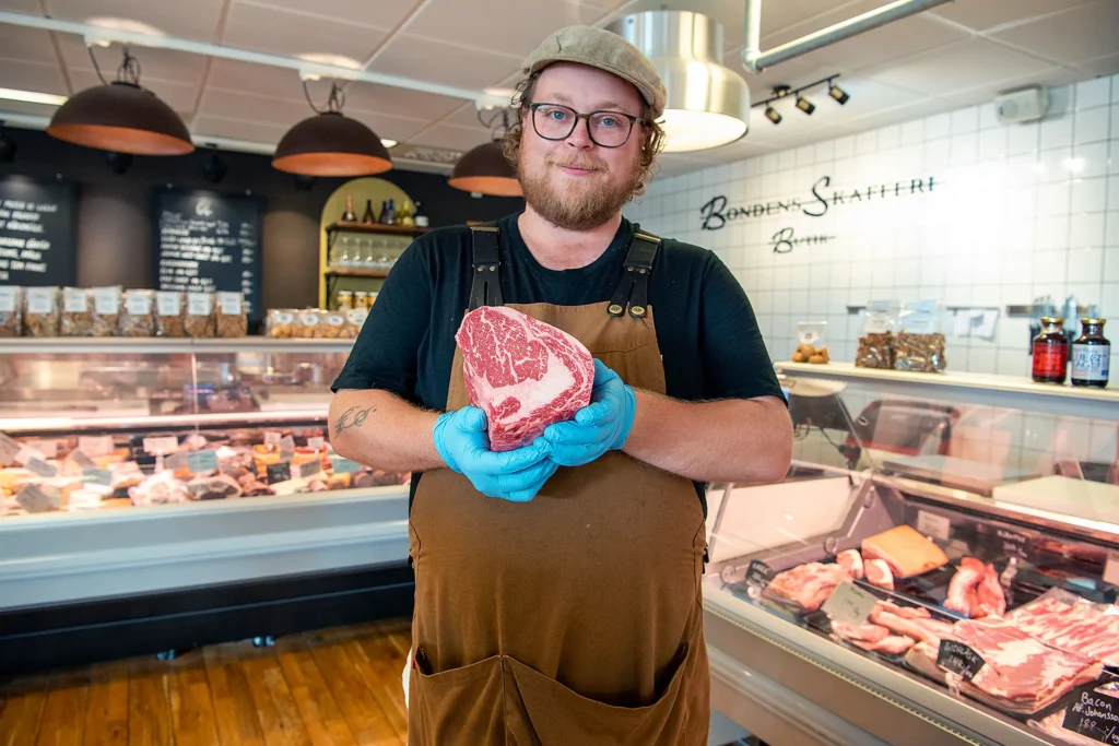 Bondens Skafferi i Åhus har en sex meter manuell delikatessdisk som innehåller ost, chark, nöt- och griskött, lamm och fågel.